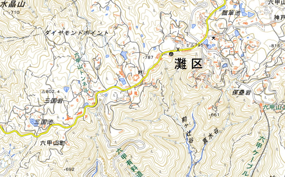 および裏六甲ドライブウェイといった各道路が枝分かれする地点で、標高795.6m。