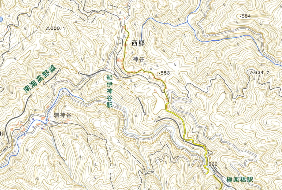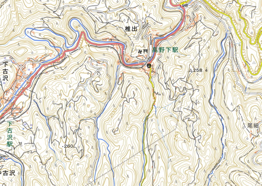 −R118−(新高野街道・槙尾道)−高野下駅舎−不動谷川左岸− |