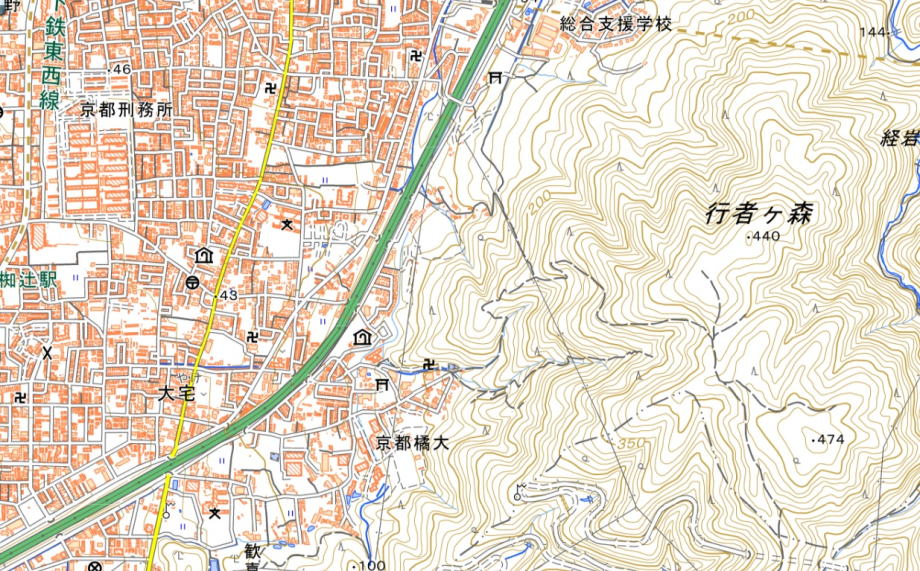 コース: 駅−醍醐寺−皇大神宮〜P343〜高塚山