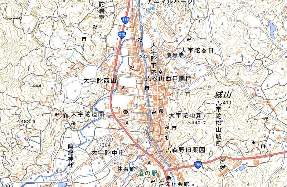 利用されていた。市街地は宇陀川と城山の間の細長い平地にのびていた。