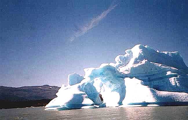 氷塊に太陽があたると一面、輝くばかりに美しいブルーの濃淡の世界。 人間が創る事