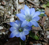 には急落が続き、油断が出来ない。所々ハルリンドウの群落があり、あの青紫の可憐な姿に