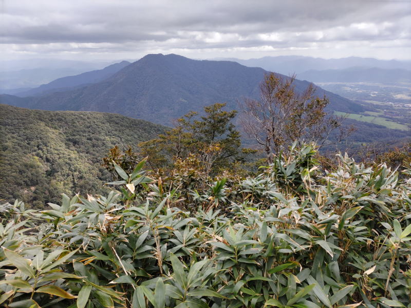 尾根の特徴も慣れっこになり、先へ進む。東側が開け目線の先に上蒜山を同定できる。その先 |